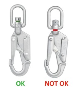 – Gancio a snodo girevole e connettore per il collegamento al punto di ancoraggio;