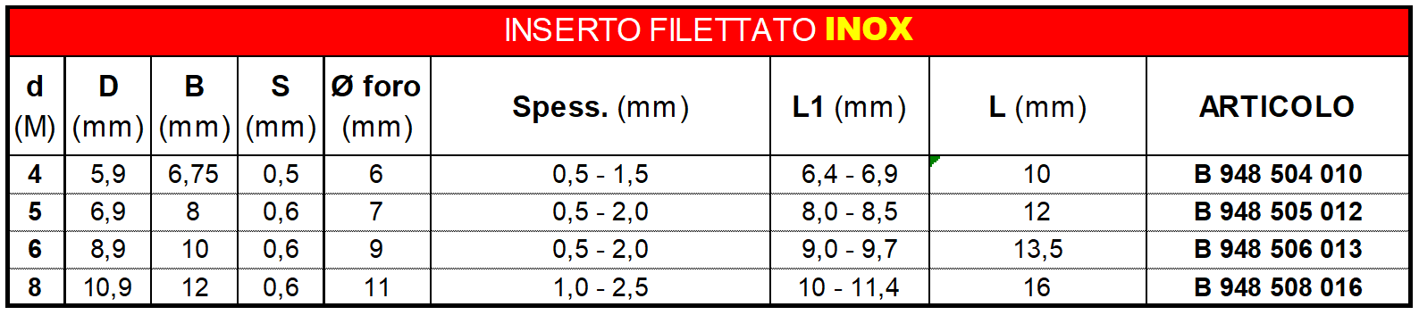 COD: B948... Categorie: Bulloneria, Catalogo, Rivetti, inserti filettati e accessori Categoria:Bulloneria, Catalogo, Rivetti inserti filettati e accessori
