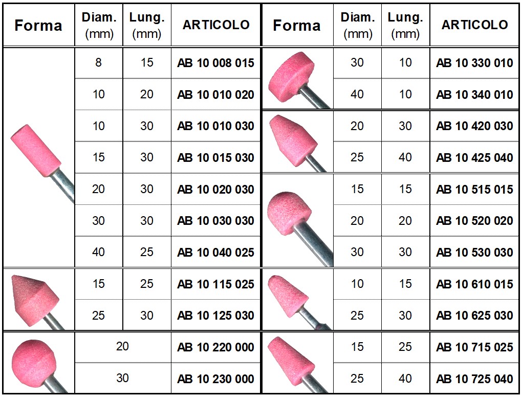 – Mole a impasto ceramico rosa con gambo, per lavorazioni su metalli.