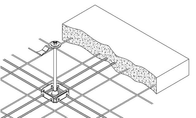 – Piastra da inglobare nel getto di calcestruzzo, classe minima C25/30 non fessurato e armato con rete a maglia 20×20 cm filo 5 mm. Il supporto deve essere appoggiato alla base del getto sotto alla rete elettrosaldata. A favore di sicurezza il CLS-IO può essere montato in corrispondenza di compluvi, displuvi e linee di ancoraggio.