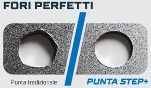 30% PIÙ VELOCE: La punta STEP+ risulta il 30% più veloce rispetto ad una punta elicoidale con affilatura tradizionale: la fase di avvio del foro, agevolata dal ridotto diametro della puntina di centraggio, risulta estremamente veloce. Il foro viene poi via via velocemente allargato al crescere del diametro dei gradini