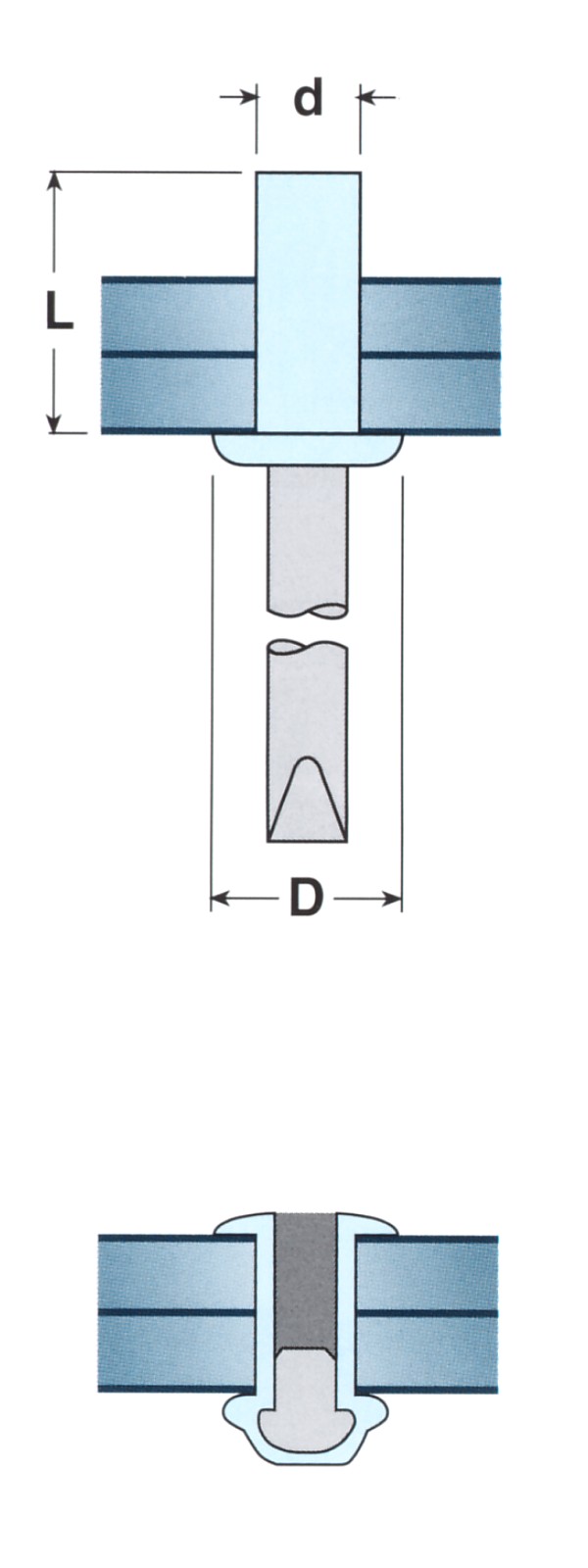 – Rivetto a tenuta stagna per accoppiamento di canale in rame o canalizzazioni in alluminio.