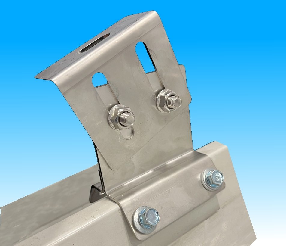 – Staffa per lamiere grecate, a misura, necessaria per rialzare il pannello nella parte posteriore, utile per cupolini grecati completo di 2 viti che ne permettono l’inclinazione;