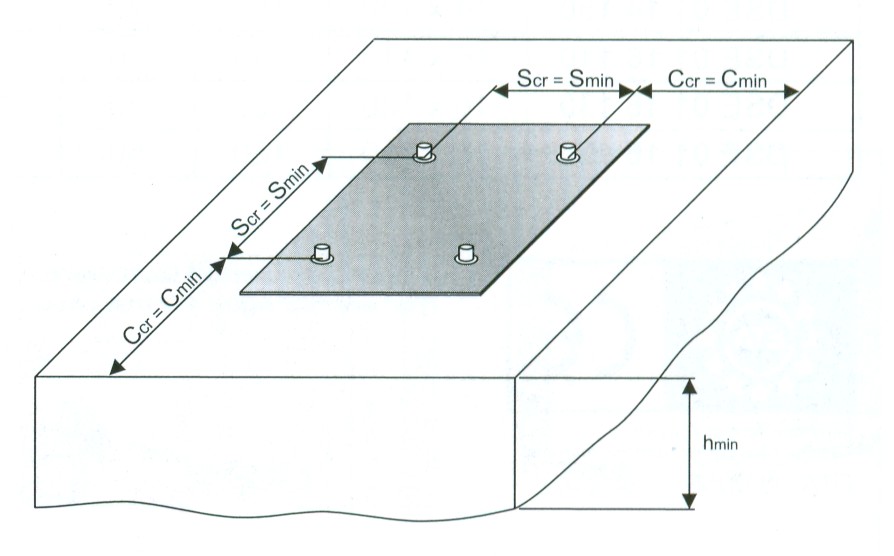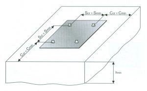 Filetto | Interasse critico tra ancoranti | Distanza critica dal bordo | Interasse minimo tra ancoranti | Distanza minima dal bordo | Spessore minimo del supporto |