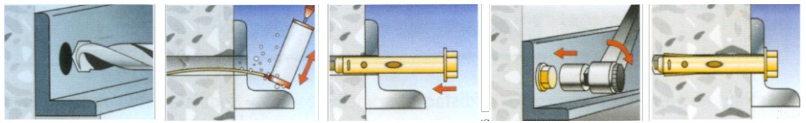 – I tasselli PFDS TE montano rondella larga DIN 9021 e vite testa esagonale tutto filetto classe 8.8.