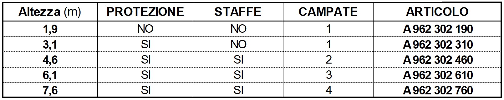 – Altezze componibili: da 1,90 m a 7,60 m.