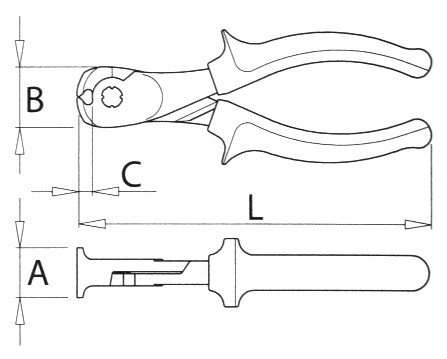 Lungh. (mm) | “A” (mm) | “B” (mm) | “C” (mm) | Peso (gr) | ARTICOLO | Capacità di taglio | |