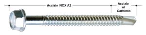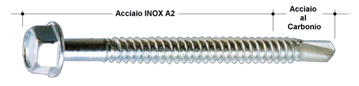 – Vite autoforante bimetallica (acciaio inox A2 + acciaio al carbonio) testa esagonale con falsa rondella.