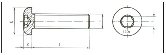 – Vite testa cilindrica bombata esagono incassato, classe 10.9.