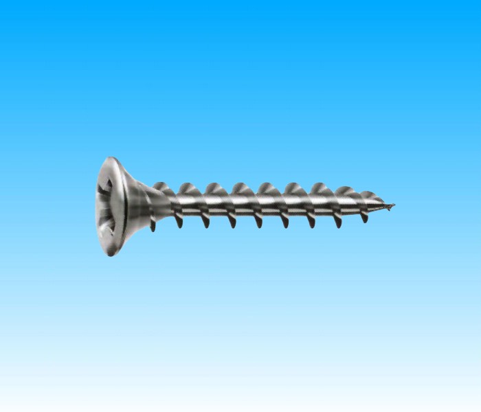 – Vite autofilettante per infissi in PVC con testa piana svasata.
