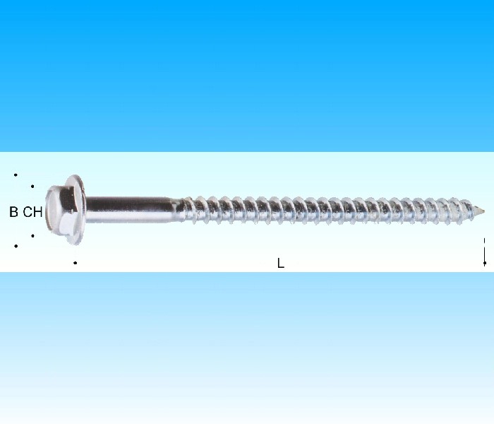 – Vite a legno testa esagonale flangiata, classe 4.8, prevalentemente impiegata nel settore edile, nele coperture civili e industriali.